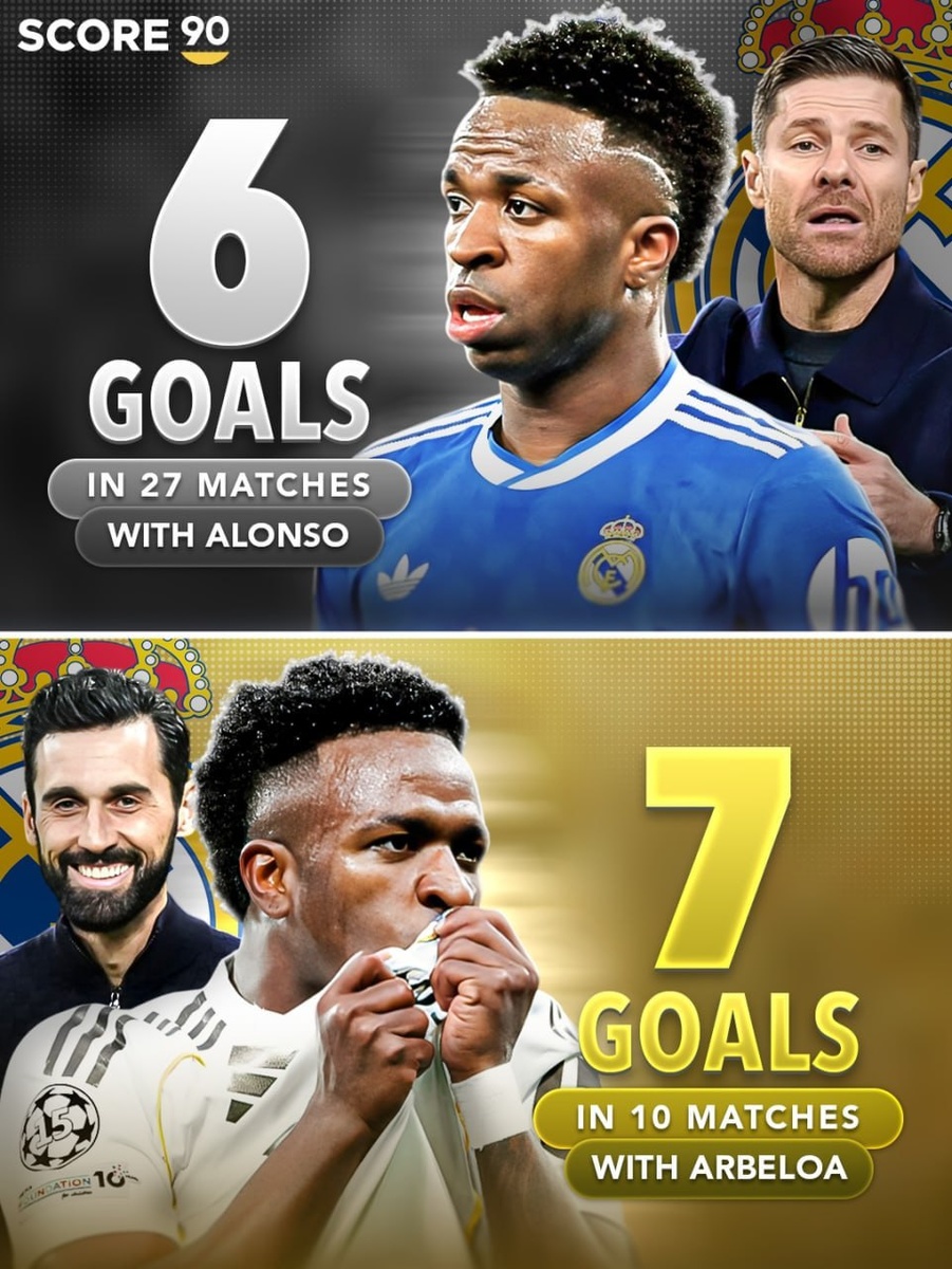 Вини забил 7 голов в 10 матчах под руководством Арбелоа — на 1 мяч больше, чем за 27 игр при Алонсо.