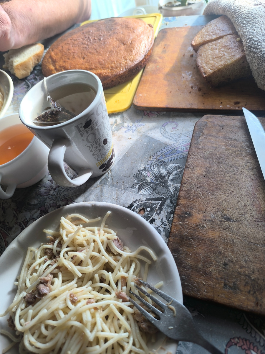 Спагетти с тушенкой (у меня как обычно самая маленькая тарелочка)