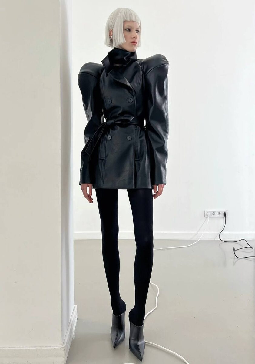 Двубортная куртка с объёмными плечами и воротником-стойкой выстраивает удивитльный архитектурный силуэт. В графичности плеч и вытянутых пропорциях считали отсылки к эстетике Saint Laurent и Balenciaga. Несмотря на силуэт как выразительный приём, вещь остаётся носибельной и универсальной вне подиумов. #ФокусМода_ВещьДня ⚫️ focusmoda.ru