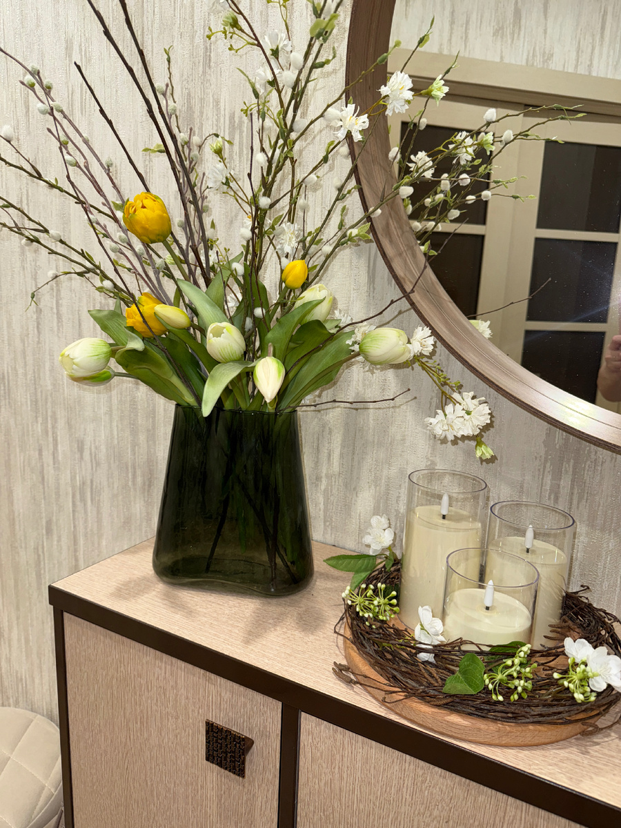 Я уже впустила в дом весну, убрала окончательно зимний декор и наставила везде весенних букетов.