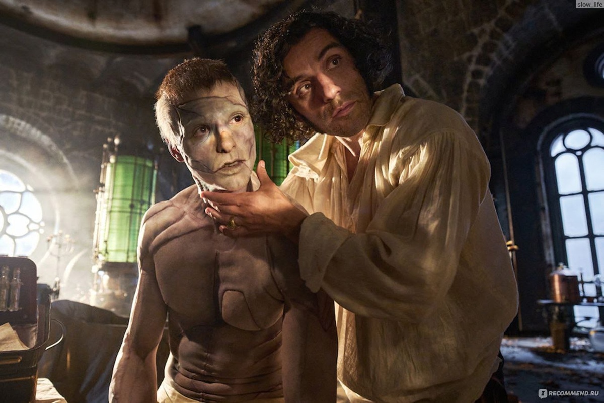 Не без остроумия (но без визуального буйства) даны стим-панковские аппараты, с помощью которых полубезумный Виктор Франкенштейн (Оскар Айзек) изготовил своего андроида (Джейкоб Элорди; оба играют в границах штампа, но другого от них и не требуется). Андроид этот, то есть, легендарное чудовище выглядит неплохо - но не поражает. А стим-панковские штуки...Такое ощущение, что в отечественном, прости Господи, фильме "Левша" аппараты эти придуманы немногим хуже. (Может ли что быть более обидным для дель Торо!)). Ну и вообще - в качестве универсальной силы, способной творить чудеса, выбрано электричество. Банально, знаете ли, и не увлекает. Но понятно для продюсеров, да.