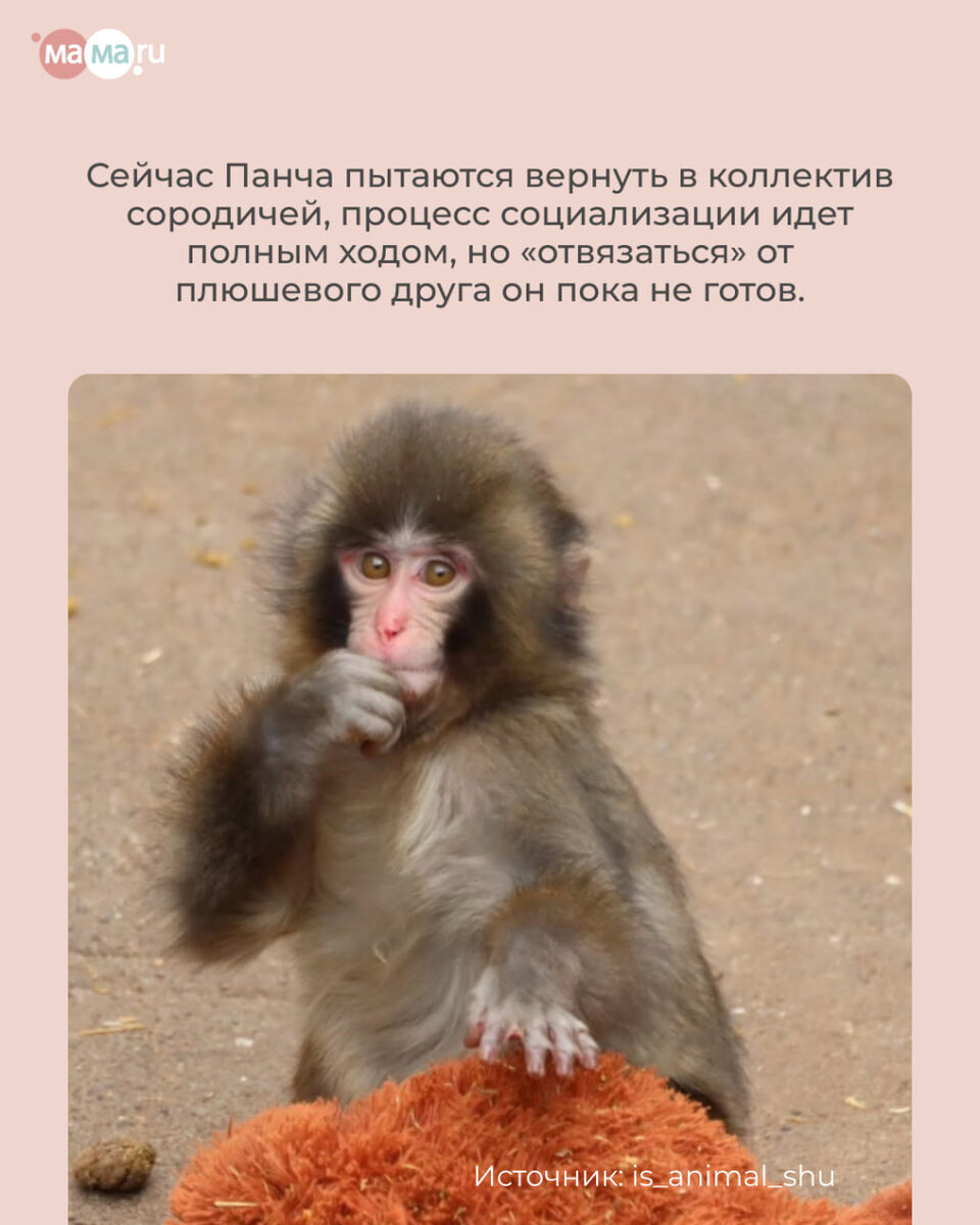 Эта история может показаться грустной на первый взгляд, но мы совсем не хотим вас расстроить. Наоборот — это удивительный повод посмотреть на то, как работает природа малышей и насколько сильно им нужна любовь и чувство безопасности. Знакомьтесь, это Панч — крошечный детеныш японской макаки. Он родился в июле 2025 года в зоопарке Итикава (Япония). К сожалению, мама отказалась от малыша сразу после родов. Сотрудникам зоопарка пришлось взять на себя заботу о крохе и выкармливать его вручную. Чтобы хоть как-то снизить уровень стресса у одинокого детеныша, киперы пошли на хитрость: они дали ему большую плюшевую игрушку — орангутанга из IKEA. Плюшевая мама И это сработало! Панч принял игрушку за суррогатную мать. Теперь он не расстается с ней ни на минуту: носит везде с собой, крепко цепляется за нее лапками и спит с ней в обнимку. Зоологи объясняют этот феномен просто: мягкая текстура игрушки имитирует шерсть настоящей матери, давая малышу жизненно необходимое чувство защищенности. При чем