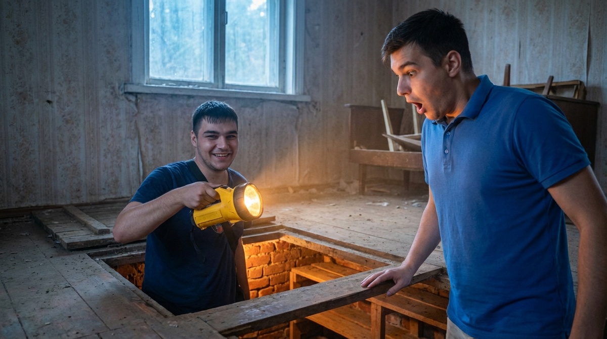 И вот, посреди кухни, я увидел его. Огромный, тяжелый люк, сколоченный из доски-пятидесятки, с массивным кованым кольцом. Тот самый мифический погреб, про который все соседи кричали, что он затоплен и сгнил.