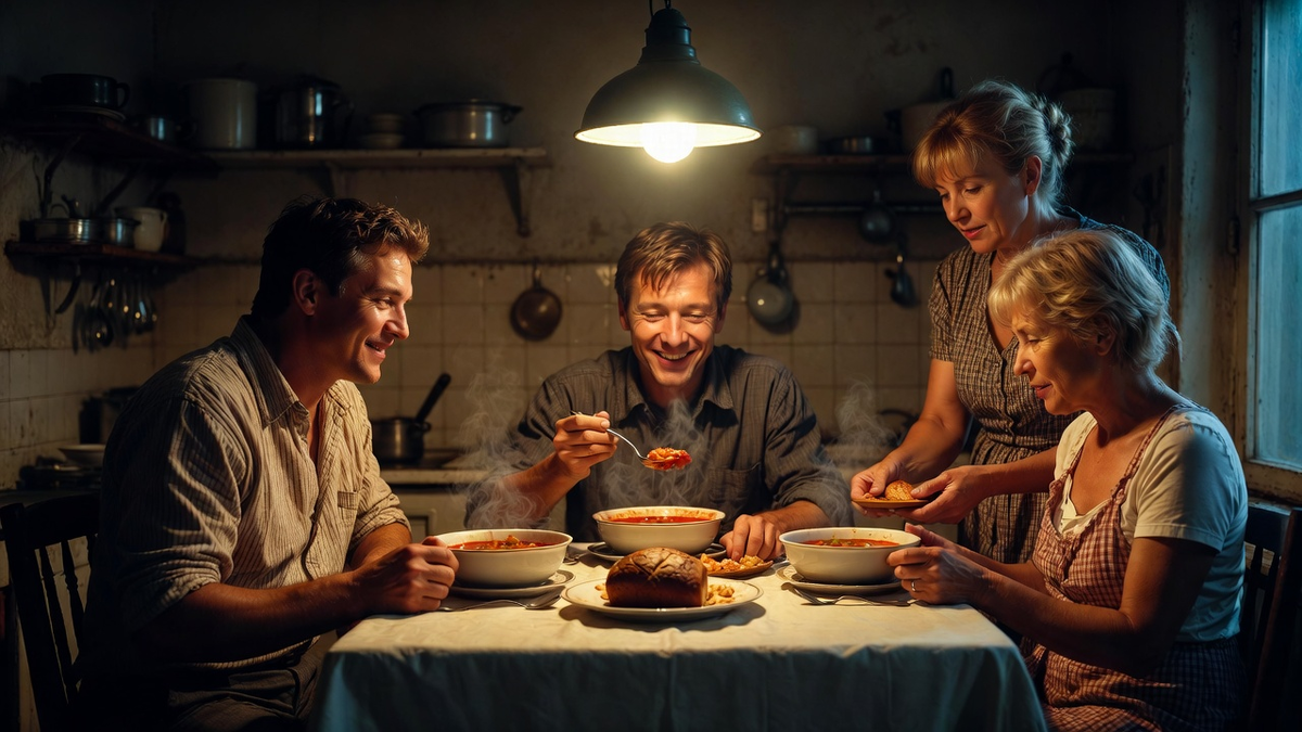 Егор заметил не сразу. Дня три они работали на стройке, и всё это время Алексей был какой-то вялый, бледный, быстро уставал. Егор списывал на стресс — у парня действительно были проблемы. Но на четвёртый день заметил: Алексей почти не ест. В обед, когда все доставали свои контейнеры, он сидел в стороне, пил воду и делал вид, что занят чертежами. — Лёха, — окликнул его Егор. — Ты чего не обедаешь? — Да не хочется, — отмахнулся Алексей. — Потом поем. — А ну иди сюда. Егор подошёл, взял его за плечо и развернул к себе. Вблизи было видно: лицо осунулось, под глазами тени, руки дрожат. — Ты когда ел в последний раз? — спросил Егор строго. — Вчера, — неуверенно ответил Алексей. — Врёшь. Позавчера? Три дня назад? Алексей молчал. Егор выругался сквозь зубы. — Совсем с ума сошёл, городской? Так и загнуться можно. — Денег нет, — тихо сказал Алексей. — Я ваши на стройку пустил, материалы купил. А себе... — Дурак, — оборвал Егор. — Деньги — дело наживное. А здоровье одно. Пошли. — Куда? — Ко мне.