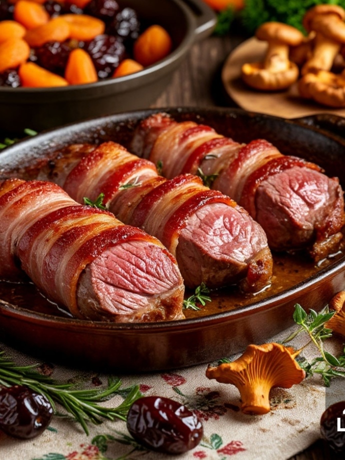 Медальоны в беконе — идеальное блюдо для креативных поводов. Эта рецептура легко адаптируется под вкусовые предпочтения: вместо чернослива подойдут курага или инжир, в соус можно добавить горчицу или херес, а шампиньоны — заменить на лисички либо шиитаке. Каждый раз результат будет свежим и неповторимым. 🥰