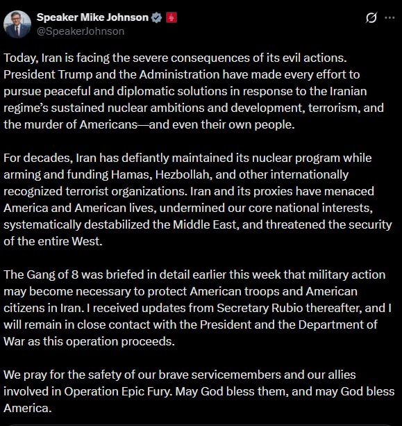 Iran facing ‘consequences of its EVIL actions’ — House Speaker Johnson