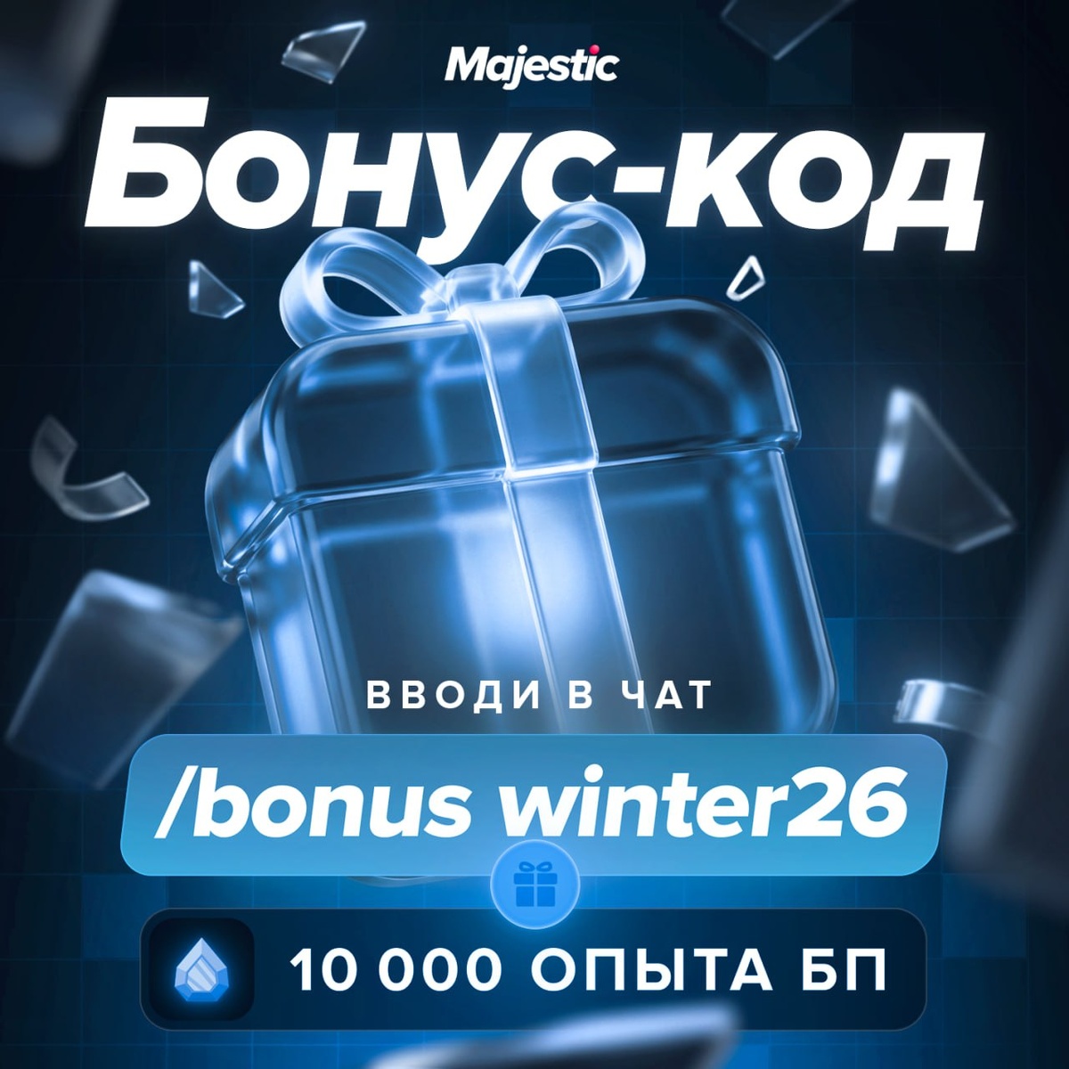 До конца сезонного пропуска остались считанные часы — не упустите наш подарок и завершите эту зиму красиво! 👉Вводи в чат игры /bonus winter26 на 10 000 опыта БП* *Код действителен для игроков, зарегистрированных до его публикации, активен до конца дня 28.02.2026. *Активировать код можно только на одном из серверов проекта. ❤️ Majestic Role Play