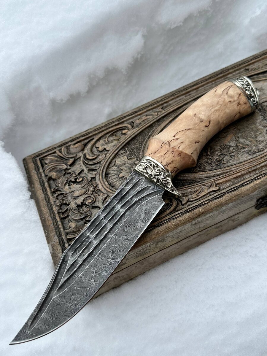 Стильно. Надёжно. 🔪 Нож "Дельфин" — выбор знатоков ручной работы! Клинок: - Кручёный дамаск на 950 слоёв — уникальный узор, высочайшая прочность. - *Стилизация "под камень"*, фигурные долы придают особый характер. - Вогнутая линза от нижнего дола, бритвенная заточка: агрессивный рез, который оценят охотники, рыбаки и коллекционеры. Рукоять: - *Карельская берёза*, авторская резьба, мельхиоровые детали. - Надёжный хват даже во влажную погоду — важно для полевых условий! В комплекте: - Фирменные ножны из натуральной кожи с двумя подвесами — удобно на поясе или в рюкзаке. - Индивидуальные кожаные ножны под заказ — +8000₽ (формованная кожа растительного дубления). 💰 Цена: 19 740 руб. 🔸 Пожизненная гарантия на отсутствие производственных дефектов 🔸 20 лет семейного ремесла, тройной контроль качества 🔸 Мастер — член Гильдии кузнецов России 📲 Пиши для заказа или консультации: @Nazarklinokbot или WhatsApp +7 (910) 134-38-31 #ножидляохоты #дамасскаясталь #ручнаяработа #кузницаназаров