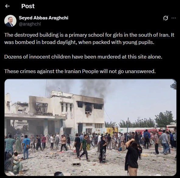 ➖Не менее 60 детей погибли, еще 80 человек пострадали из-за атаки по школе на юге Ирана, сообщили в Минздраве. Глава МИД Ирана пообещал, что это не останется без ответа. "Школа разбомблена средь бела дня, когда в нем находились многочисленные юные ученицы. Десятки невинных детей убиты. Эти преступления против иранского народа не останутся безнаказанными", — написал Аббас Аракчи. Генерал КСИР Эбрагим Джаббари: "Трамп должен знать, что сегодня мы запустили ракеты из наших запасов. Скоро мы представим оружие, которого вы никогда раньше не видели". ➖Около 200 военных США были ранены или убиты в ходе ударов Ирана, — КСИР. ➖На втором видео иранские СМИ публикуют кадры с пусками ракет. Подписаться: За Брата 🇷🇺