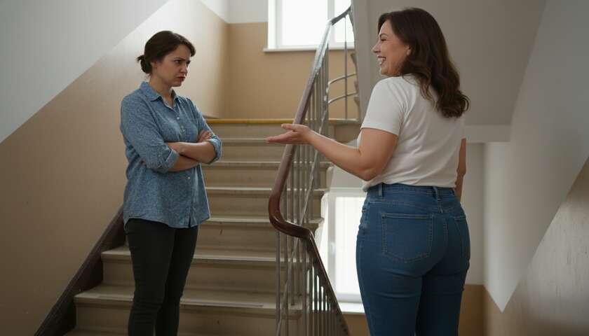 Она - это соседка по лестничной площадке. Если честно, даже не знаю точно, сколько ей лет. Иногда выглядит так замечательно, можно подумать, что ей 35. А иногда смотрится и на все 75🤷♀️. Особенно сегодня. Видать, не в настроении, раз начала ворчать на мои джинсы.