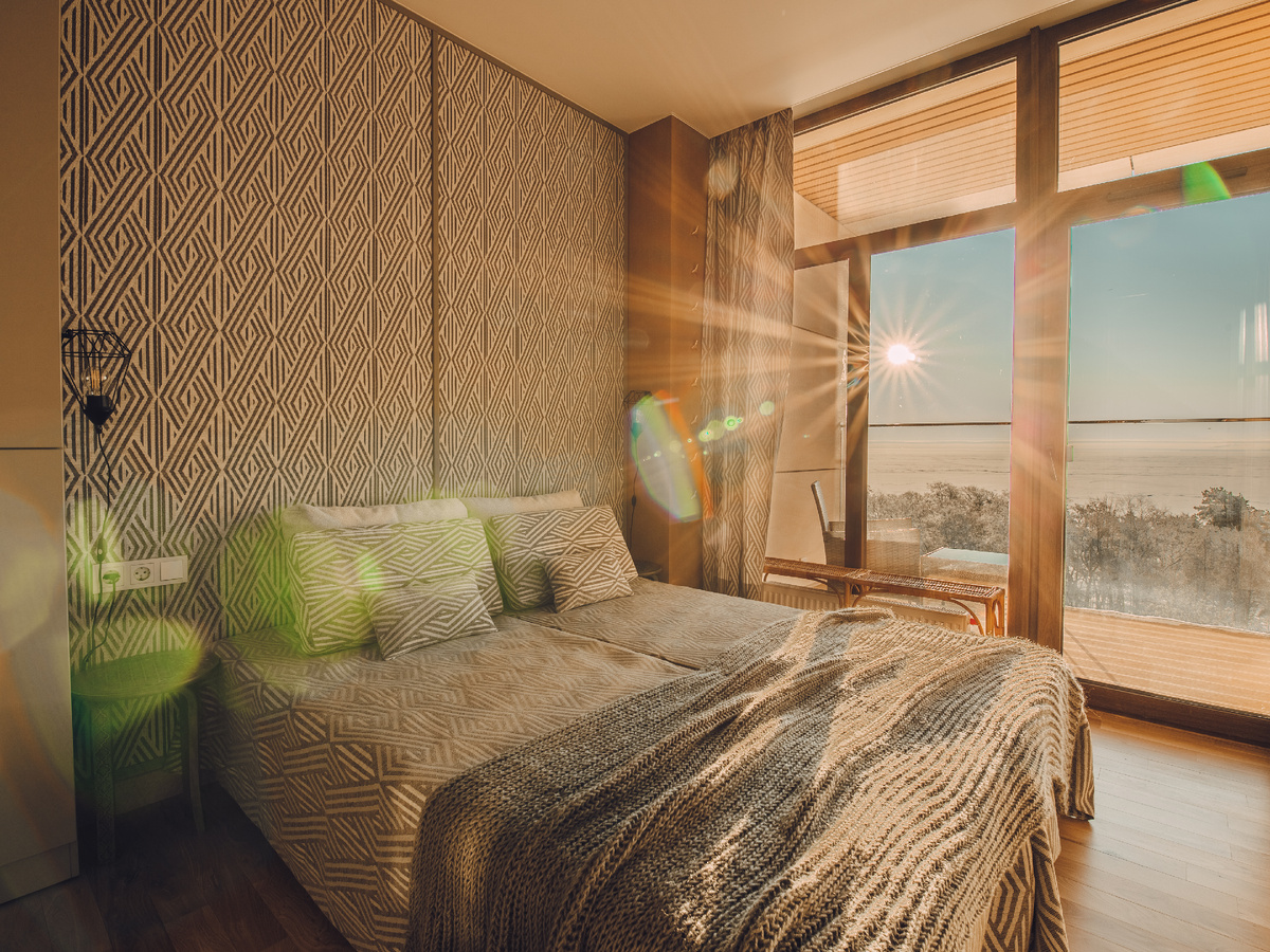 Все мы любим легкие, воздушные, не перегруженные интерьеры. В то же время хотим, чтобы дом отражал своих хозяев — не был нейтрально-красив, как номер в отеле. Порой боимся приобрести понравившийся предмет, полагая, что он не впишется в современный стиль. Рассмотрим интерьер однокомнатной квартиры площадью 38 м. кв. Из окон прекрасный вид на залив и сосны, что стало отправной точкой в концепции проекта: впустить природу в дом через цвет и фактуры. Небольшая перепланировка позволила максимально раскрыть пространство и сделать каждый уголок многофункциональным. Приемы и материалы отделки перетекают из одной плоскости в другую и из комнаты в комнату. Дуб на полу, мебели, в отделке стен. Гобелен на стенах, шторах, подушках, покрывалах, задниках витрин. Покраска на стенах и мебели. Фактурная штукатурка, стекло, зеркала. Много предметов изготовлено на заказ, чтобы идеально вписаться в размер и цвет. Мини-кухня организована в форме буфета. Весь интерьер в спокойных оттенках дерева, мха, соснов