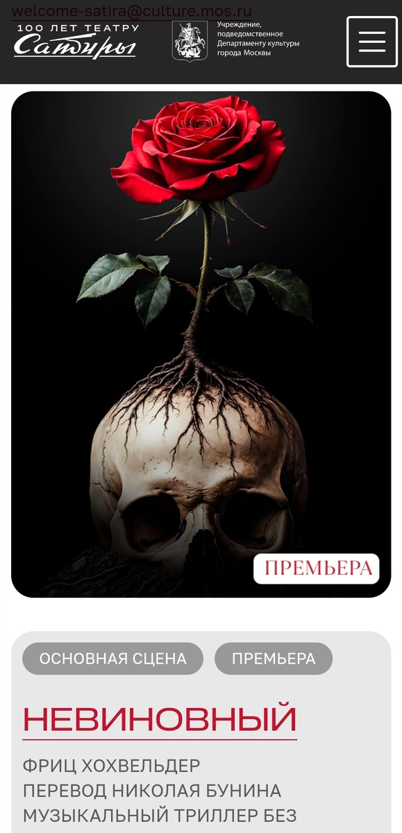 В этот заснеженный февраль театр Сатиры дарит зрителям уже вторую премьеру - музыкальный триллер без преступления, написанный австрийским драматургом, мастером философски насыщенной драмы.