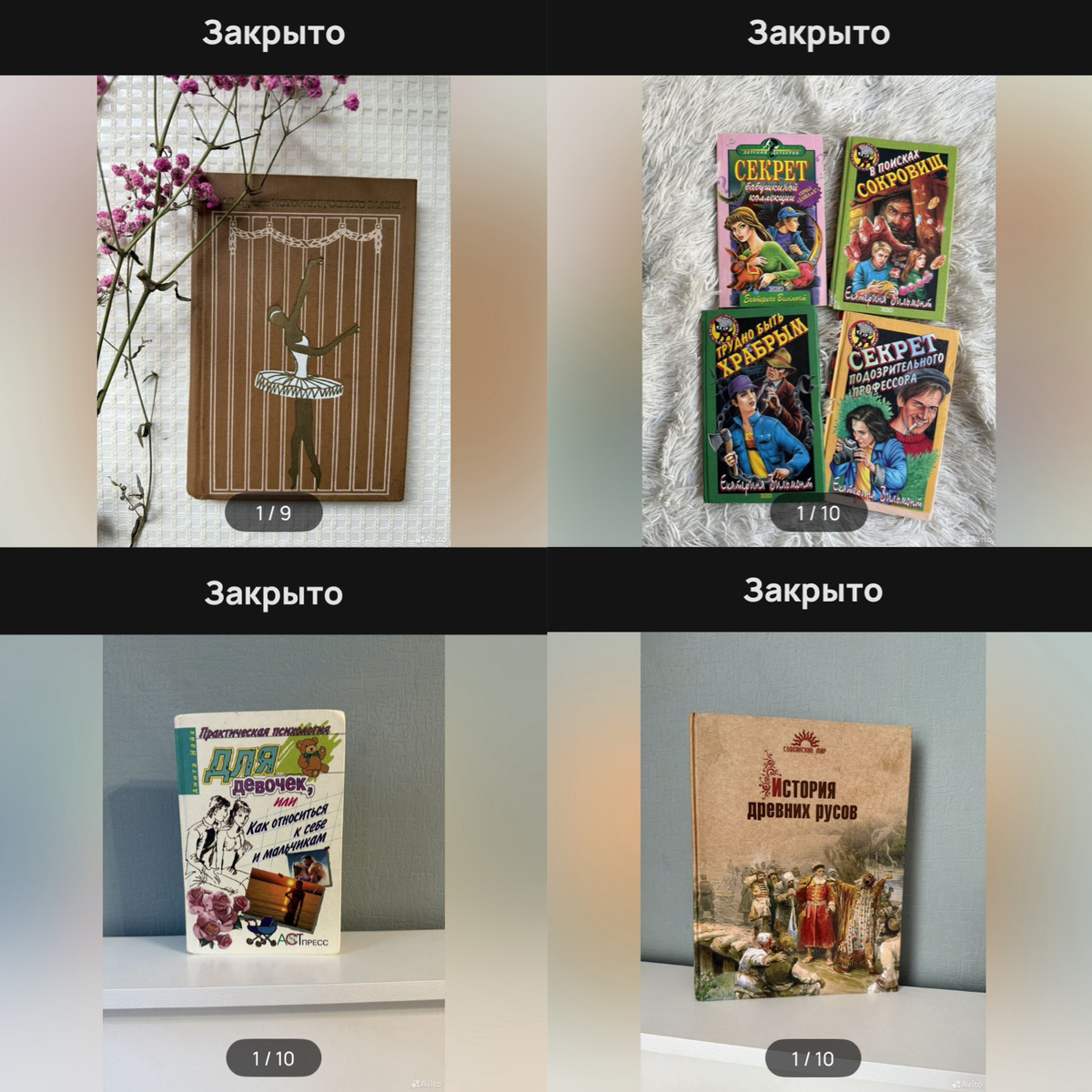Начну с перепродаж. Это вещи, которые мне самой не нужны, но я вижу хорошую акцию, покупаю и выкладываю на Авито. Или ищу их в комиссионке, как истинный детектив 🔍 В основном так получается с книгами из прошлого.