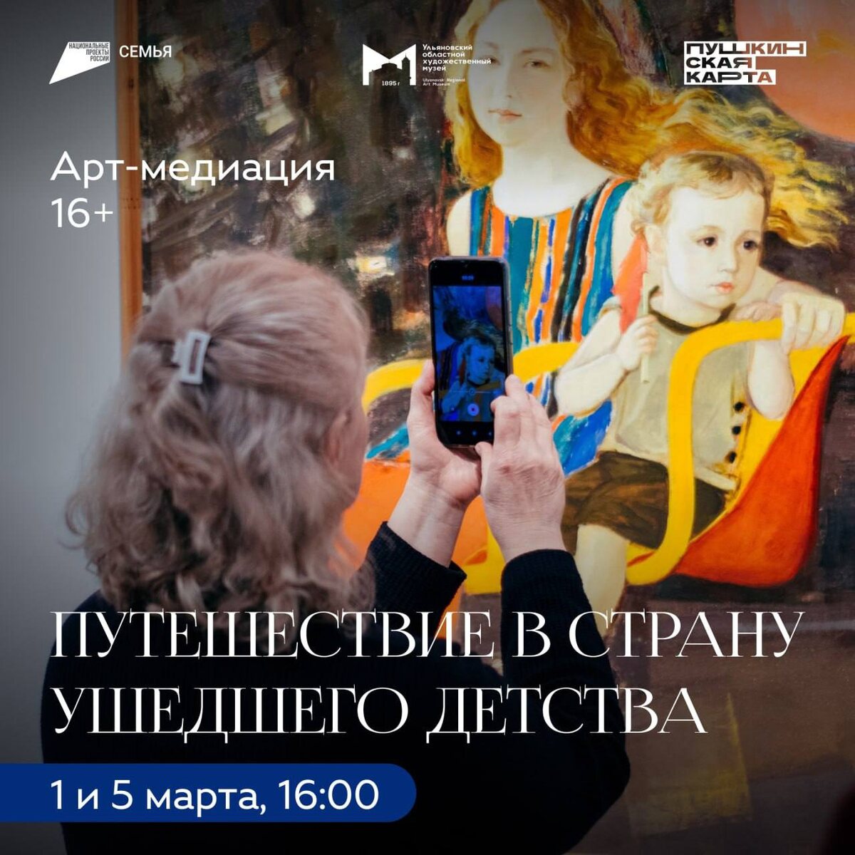 » 🗓️ 1 и 5 марта, 16:00 📍Ульяновский областной художественный музей Приглашаем познакомиться с детскими портретами симбирских дворян и образами детства в картинах художников советской эпохи, а так же поделиться собственными впечатлениями, рассказать о возникших ассоциациях и вспомнить свое собственное детство. На медиации вы увидите картины ульяновских художников Валентина Бобылькова, Бориса Клевогина, Сергея Худякова; познакомитесь с яркими цветными литографиями Клары Калинычевой и Ларисы Даватц, рассмотрите юмористические рисунки Евгения Щеглова; сможете рассмотреть детские ясли в Симбирске 1926 года на акварели Ивана Гурьева. Вместе с куратором выставки Еленой Калашниковой мы поднимем непростые вопросы: что менялось и что оставалось неизменным в восприятии детства в течении двух столетий и чем представленные на выставке картины актуальны сейчас. Событие проходит в рамках параллельной программы к выставке «Детский мир. Взгляд сквозь время» и проводится по предварительной запи