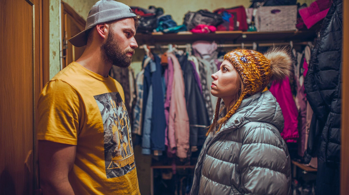 Он схватил Ольгу за рукав пуховика и дёрнул на себя, заставляя её пошатнуться и удариться плечом о вешалку. Старая деревянная конструкция скрипнула, одна из курток упала на пол, но никто не обратил на это внимания.