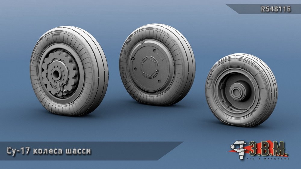 Э.В.М. готовят к выпуску набор колес для модели советского истребителя-бомбардировщика Су-17 модификаций М3 и М4 в масштабе 1/48.