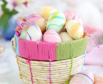 Мраморные трюфели в форме пасхальных яиц - это восхитительные домашние конфеты в форме яиц. Трюфели из белого шоколада покрыты мраморным узором пастельных тонов, что придает этим великолепным угощениям форму яиц. Обязательно попробуйте их приготовить. Вот рецепт трюфелей. Для приготовления нам будут нужны вот эти продукты: