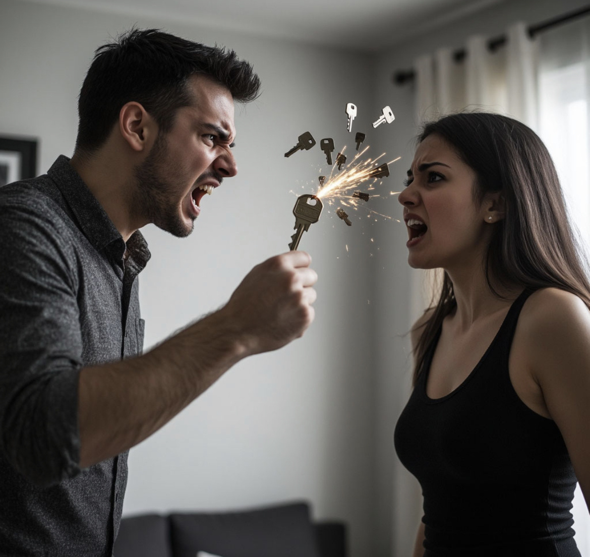 Громкий крик разорвал тишину просторного коттеджа на окраине города. Елена отшатнулась, прижимая ладонь к груди, а её муж, Андрей, стоял напротив — красный от гнева, с искажённым лицом и сжатыми в кулаки руками.