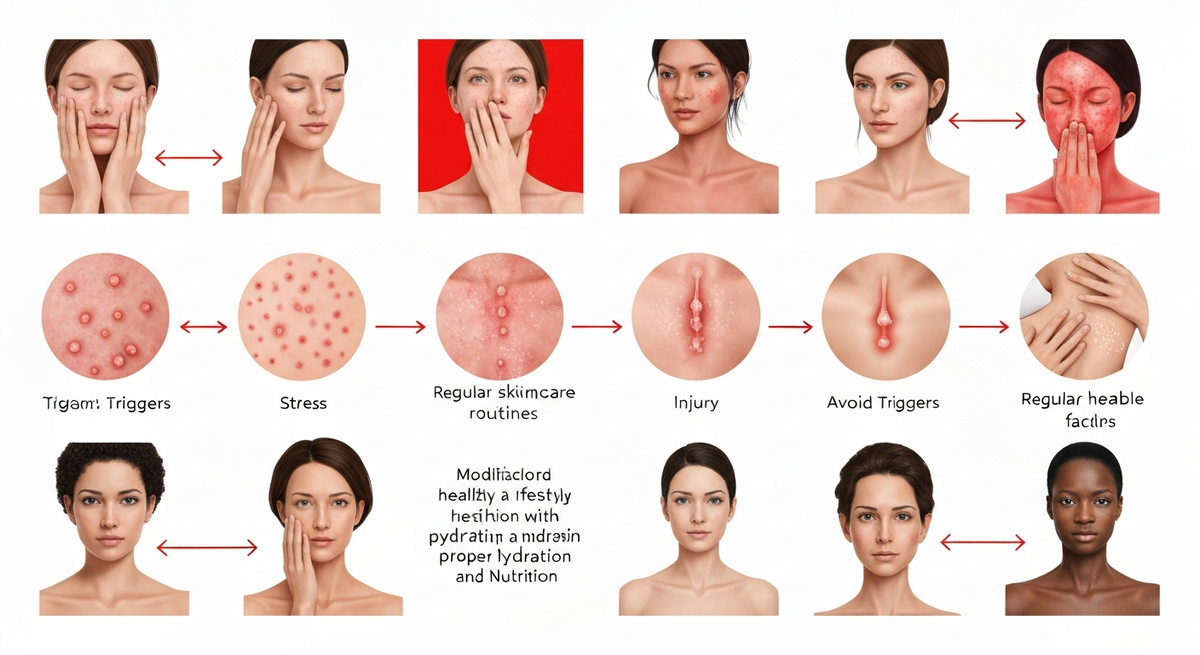 Часто люди думают, что обострение вызывает один конкретный фактор. Но на самом деле, это может быть «эффект домино». Небольшая простуда, на фоне которой вы чуть больше переживали из-за семейных дел, а потом ещё и попробовали новый крем, который чуть подсушил кожу. Каждый фактор по отдельности не критичен, но вместе они дают мощный удар.