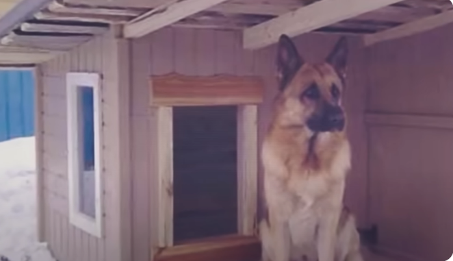Мужчина вернулся в дом и выпустил пса. Овчарка пулей вылетела во двор, подбежала к будке, осторожно заглянула внутрь. Убедилась, что всё в порядке, и только тогда расслабилась.