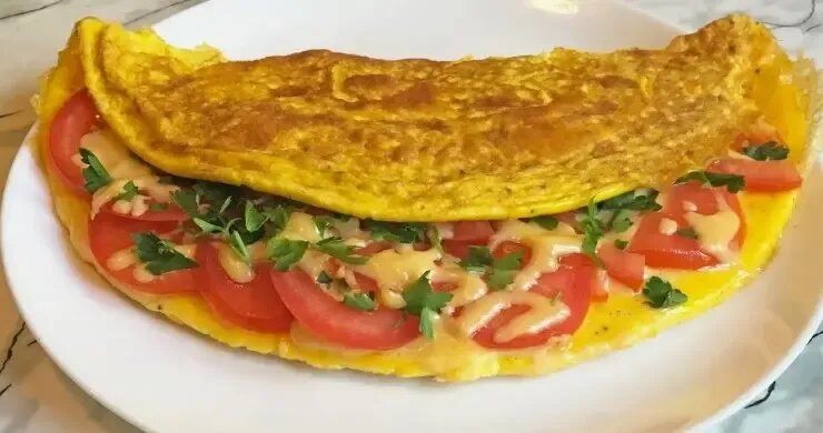 яйца — 2 шт.;сыр — 80 гр.;ветчина — 30 гр.;листья салата или зелень по вкусу;томат — 1 шт.