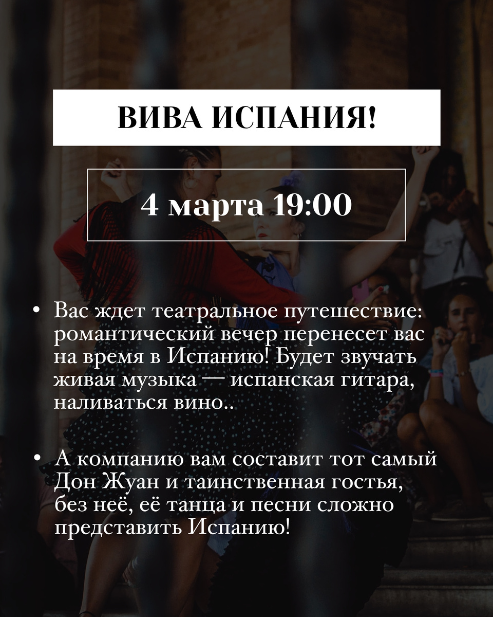 ГАСТРОНОМИЧЕСКИЙ ТЕАТР В КРОМЕШНОЙ ТЕМНОТЕ «ВИВА ИСПАНИЯ!»🍇🇪🇸 // 4 марта 19:00
