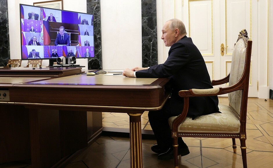 На экстренном совещании по видеосвязи Президент и постоянные члены Совета Безопасности проанализировали последние события, связанные с Ираном. Президент провел оперативное совещание в формате видеоконференции с постоянными членами Совета Безопасности. В центре внимания участников оказалась актуальная ситуация, развивающаяся вокруг Ирана, и ее возможные последствия. Фото:kremlin.ru.
