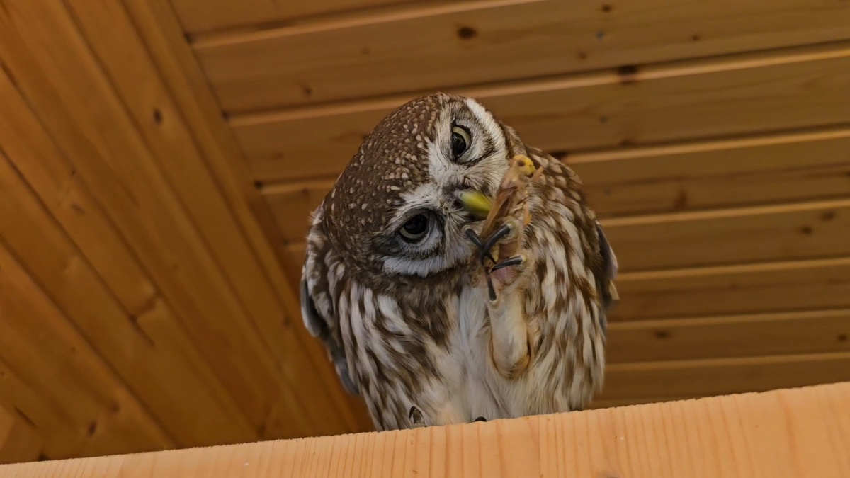 В совешне сыч Лучик поучаствовал в распаковке и дегустации консервированных насекомых, которые готовит T-RexFood.