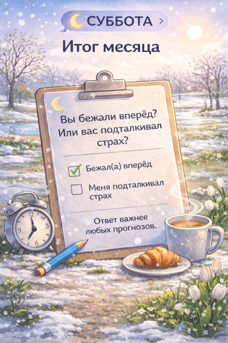 Февраль многое забрал. Иллюзии скорости. ⚡ Иллюзии контроля. Идею, что всё можно просчитать наперёд. Он был про ускорение. Про давление. Про ощущение «нужно срочно». Февраль честно показал: где мы действовали из зрелости, а где — из тревоги. Где выбирали паузу, а где спешили, чтобы не слышать себя. И главный вопрос месяца — очень личный: Вы правда бежали вперёд? Или боялись отстать? Ответ важнее любых прогнозов. ✨ Потому что именно он определит ваш следующий шаг. Не быстрый. А точный. 🎯 😘 @mariyabilat
