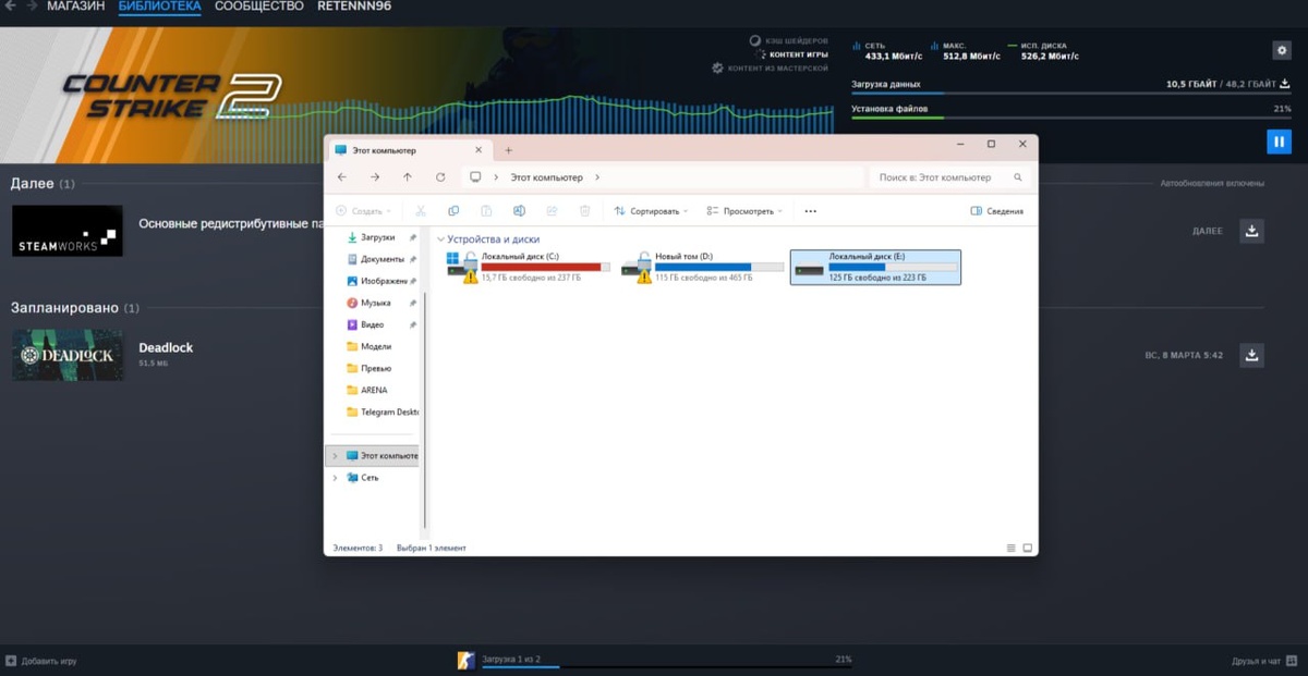 SSD'шник ОЖИЛ. Он оказывается не пал смертью храбрых, а работает 😳 У меня стоит 2 SSD накопителя на 250 Гб и один Хард на пол террабайта, после бетки 4-го сезона Арены у меня, как я думал, отлетел второй SSD, на него просто не перекидывались никакие файлы и если я пытался что-то из стима скачать - он сразу уходил в ошибку и писал что диск повреждён. Сейчас решил СЛУЧАЙНО перепроверить и он просто взял и начал качать туда CS2. Чё скажете, знатоки? Может старый БП уже давно начал умирать и на третий накопитель просто не хватало мощности или в чём была проблема? 🤷🏻♂️