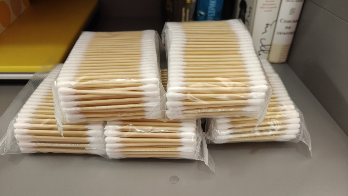 1. Тысяча штук за 210 рублей. Хлопковые на бамбуковых стиках. Таких у меня еще не было. Что-то натуральное в руках всегда приятнее пластика. Да, и цена мне кажется, привлекательная. Одна упаковка в 200 штук выходит по 42 рубля. Этого запаса мне лет на 5 хватит 💯.