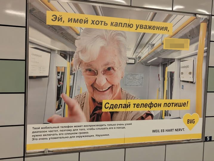 В метро Берлина появились грубые плакаты на русском с призывом говорить по телефону тише