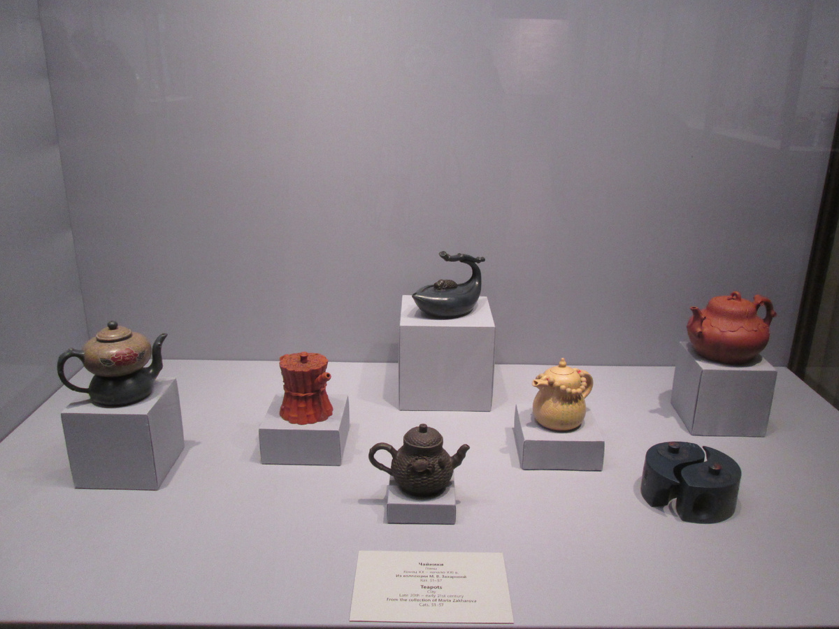 Выставка проходит в Арапском зале Зимнего дворца. Экспонаты созданы из глины, месторождения которой находится в Китае в окрестностях города Исин.