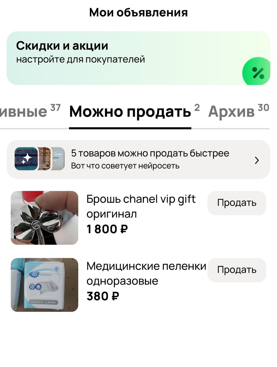 Это я про предложение от авито "можно продать", которое уютно разместилось между "активные" и "архив".