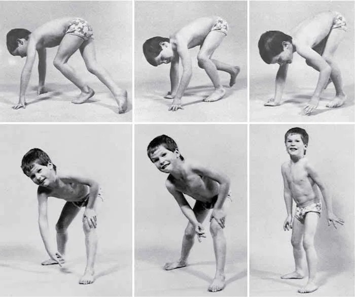 Симптом Говерса — это не просто медицинский термин, а важный диагностический признак, который может указывать на серьезные проблемы с мышечной силой. 🤔 Давайте разберёмся, что это такое и почему это важно! Когда мы говорим о симптоме Говерса, мы имеем в виду специфический способ вставания, при котором человек использует руки, чтобы «взобраться» по своим бедрам. Это может происходить, когда человек пытается подняться из положения сидя или лёжа. 🛋 Этот механизм возникает как компенсация недостатка силы в ногах, когда тело ищет альтернативные способы для выполнения привычных движений. 🔸 Степени проявления симптома Существует несколько степеней проявления симптома Говерса: 1. Лёгкая степень: Замедленное вставание, где человек опирается одной рукой на бедро. Это может быть незаметно для окружающих, но уже является сигналом о возможной проблеме. ⚠️ 2. Умеренная степень: Вставание происходит через позу «на четвереньках», с отталкиванием от бёдер. В этом случае уже требуется больше уси