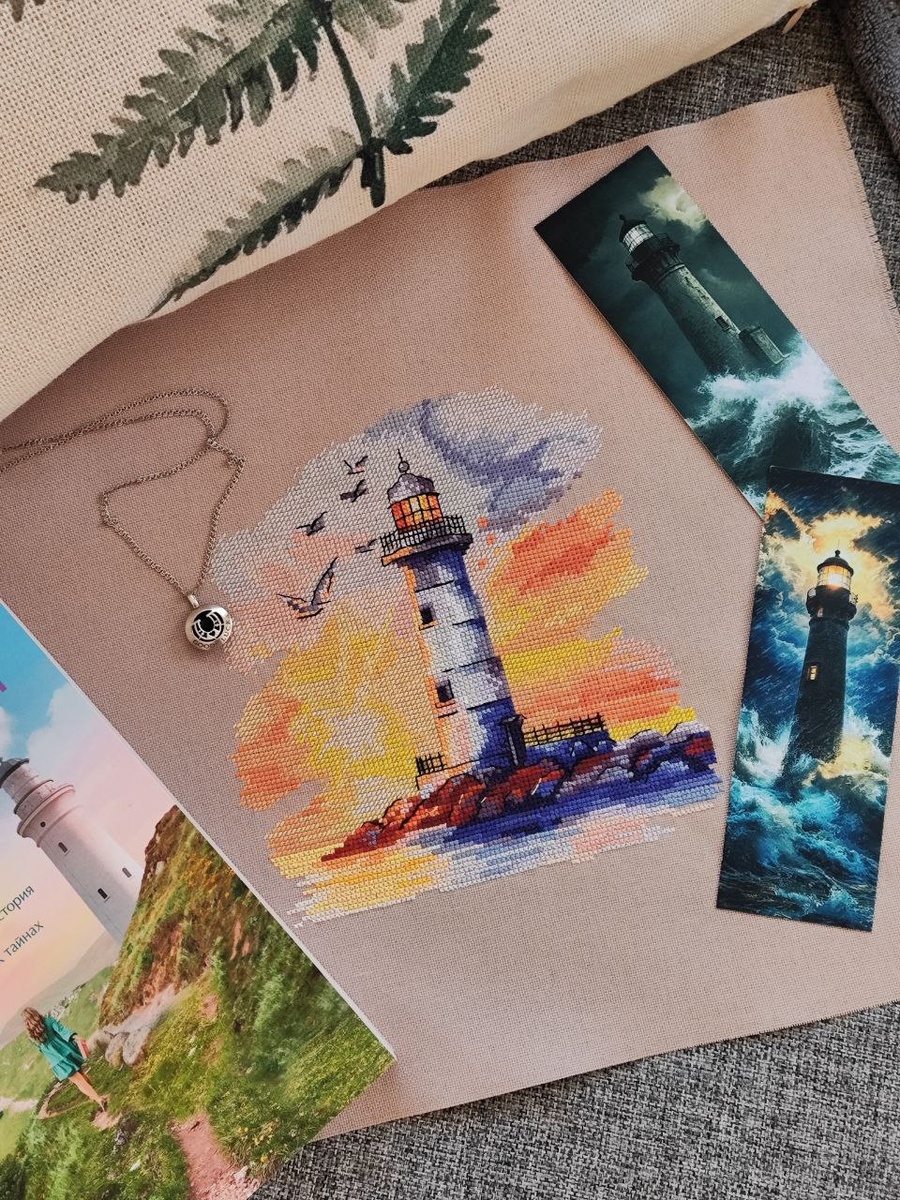 В день рождения начала этот сюжет "Маяк на закате" от Мира Вышивки и Е.Виноградовой и сегодня закончила