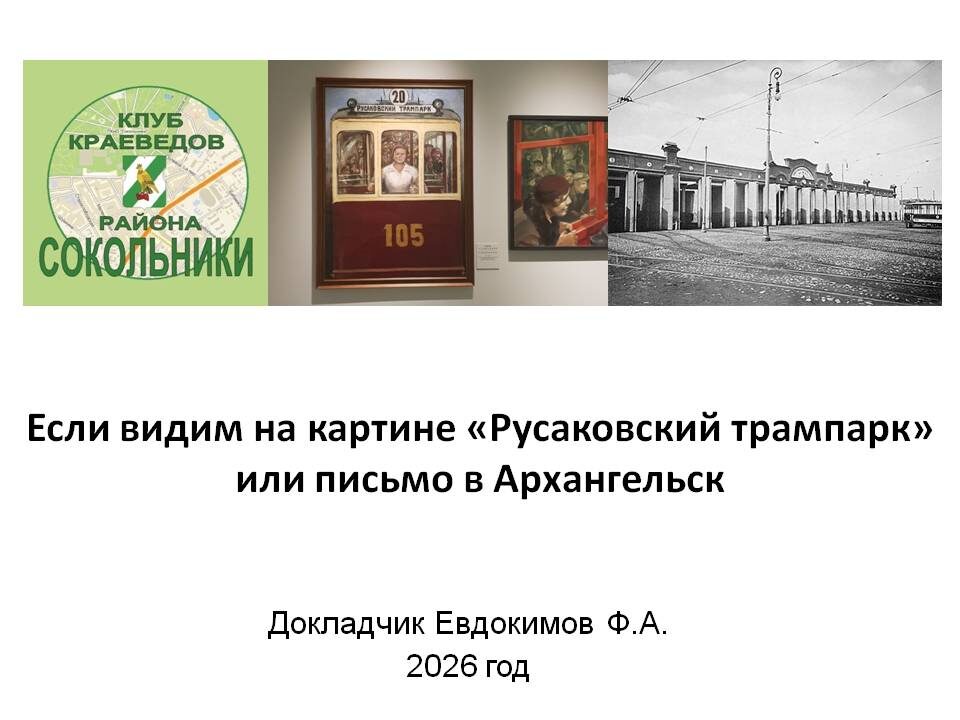 Первоначально появилась идея, что это полотно может быть частью проекта «Сокольники за границами района» и для написания поста потребовалось узнать как можно больше об этой картине, в том числе правильное название, год создания и другие характеристики. И тут появились серьёзные разночтения в названии: где-то картина называлась «Русаковский трампарк», а где-то, в том числе и в описании на обозначенной выставке – «Русаковский трамвай». А дальше мысль разлетелась на несколько направлений поиска.