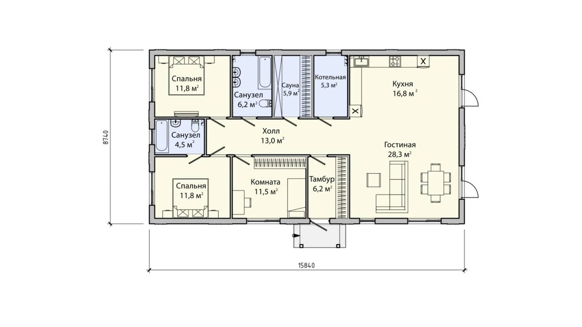 Представляем наш проект — Проект ПБ-123! 🏡 Это уютный одноэтажный жилой дом площадью 123,5 м² с современными и продуманными решениями. В доме есть 3 комнаты, просторная кухня-гостиная, сауна и техническое помещение под котельную — всё для комфортной жизни вашей семьи! 🔥🛁🛋 ✨ Основные особенности: Конструкции наружных стен из часторебристых сборных железобетонных панелей по технологии БЭНПАН Премиум толщиной 270 мм Внутренние перегородки — 100 мм Высота стен — 3,05 м, потолки — от 3 до 4,1 м Двухскатная крыша с организованным водостоком Внешняя отделка: покраска, штукатурка по пенопласту и мраморная крошка на цоколе Входные площадки и ступени — из нескользящего керамогранита Планировка на первом этаже включает тамбур, холл, 2 санузла, кухню с гостиной, 3 комнаты, сауну, техническое помещение и гардеробную. 🏠 👉 Подробнее о проекте: https://beregpesochnoy.ru/house/lot-no6b/?utm_source=dzen