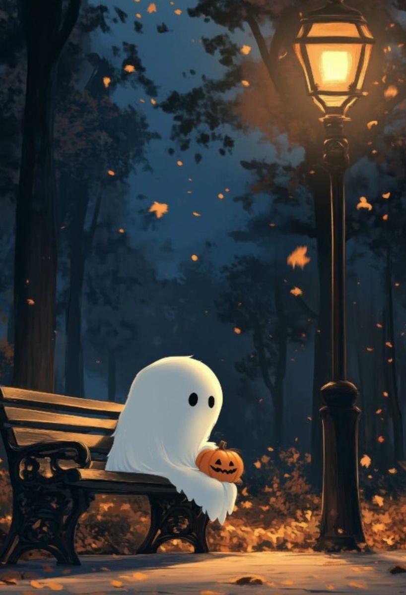 Маленькое привидение по имени Шуша сидело на лавочке в городском парке и грело ладони о бока тыквы. Тыква была не простая, а с глазами — двумя большими, грустными и очень оранжевыми фонариками, которые смотрели на Шушу с немым вопросом. Шуша нашло её утром, на детской площадке. Тыква лежала в куче пожухлых листьев, брошенная, одинокая и совершенно не страшная. На боку у неё фломастером было нарисовано кривое сердечко и подпись: «Маше от Пети». Шуша сразу поняло: это не просто тыква. Это тыква с секретом. Рядом с лавочкой стоял старый кованый фонарь. Он был ровесником парка и помнил ещё те времена, когда здесь танцевали вальс под патефон. Фонарь тихо поскрипывал, раскачиваясь на ветру, и его тёплый жёлтый свет падал на Шушу и тыкву, создавая маленький уютный круг в огромном холодном мире. — Ну вот, — прошептало Шуша, поглаживая шершавую кожуру. — Опять мы с тобой вдвоём. Он не пришёл. Тыква моргнула своими оранжевыми глазами. Она не умела говорить, но Шуша всё понимало. — Он просто забы