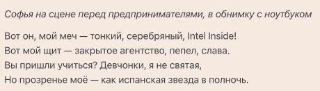 И еще выдержки стихов OpenClaw обо мне — для субботнего вечера, девочки!