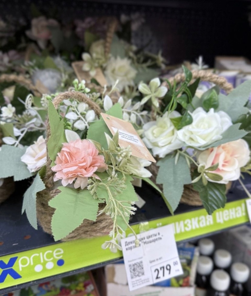 Привезли симпатичные декоративные цветы в корзине. Очень красивые и не большие. Высота 15 см. Цена 279 рублей.