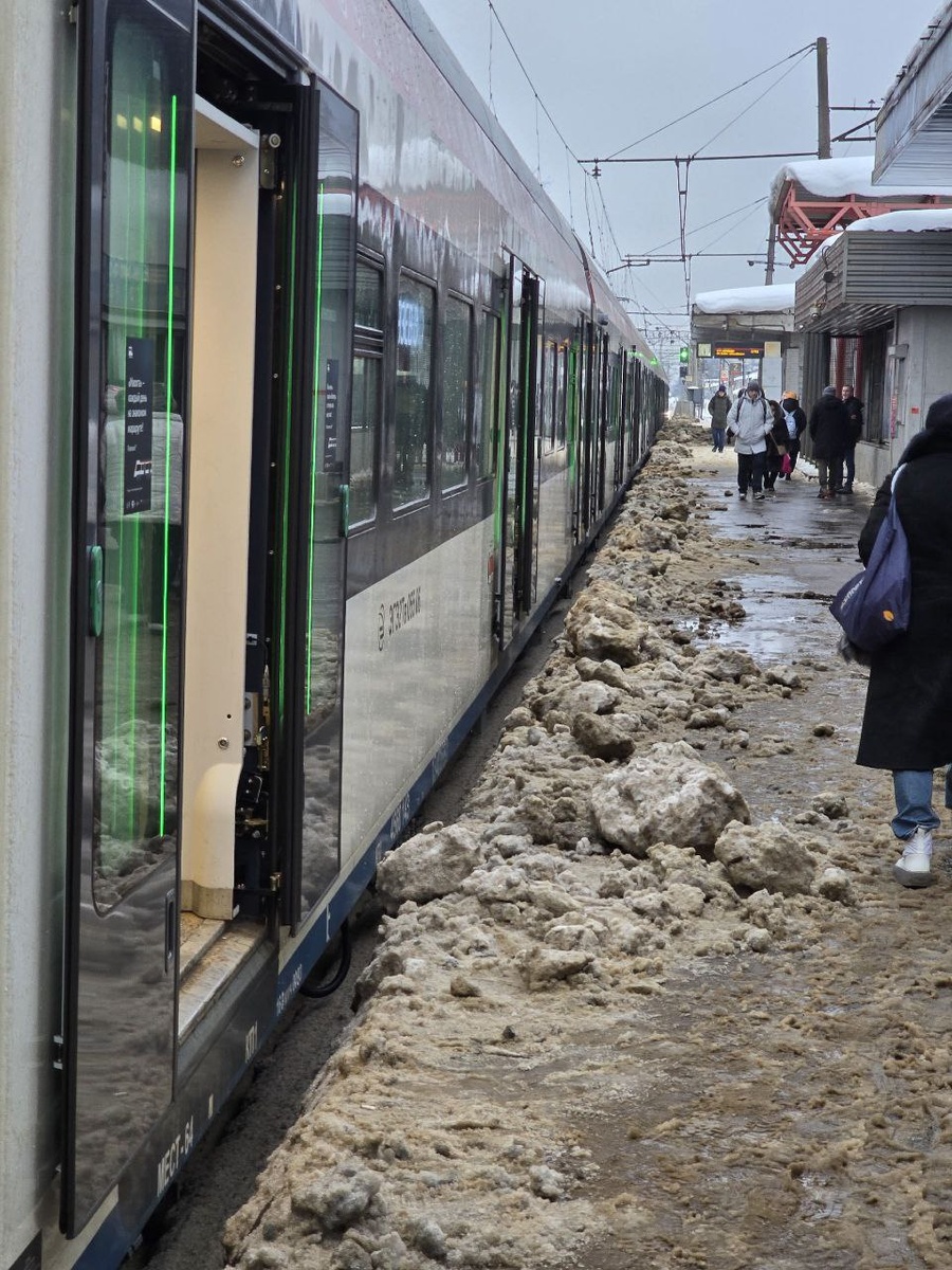 Вот такие глыбы снега сегодня обеспечивали комфортную посадку пассажиров на станциях Болшево, Подлипки -Дачные и Валентиновка🤷♂️