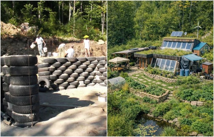 Увлеченность устойчивой жизнью приводит некоторых энтузиастов к тому, что они не просто начинают строить дома из натуральных материалов. Канадская пара, например, настолько увлеклась проектами «земляных кораблей», что взялась за лопаты и отправилась в глушь, чтобы построить удивительный дом, в котором и живет более десяти лет.
