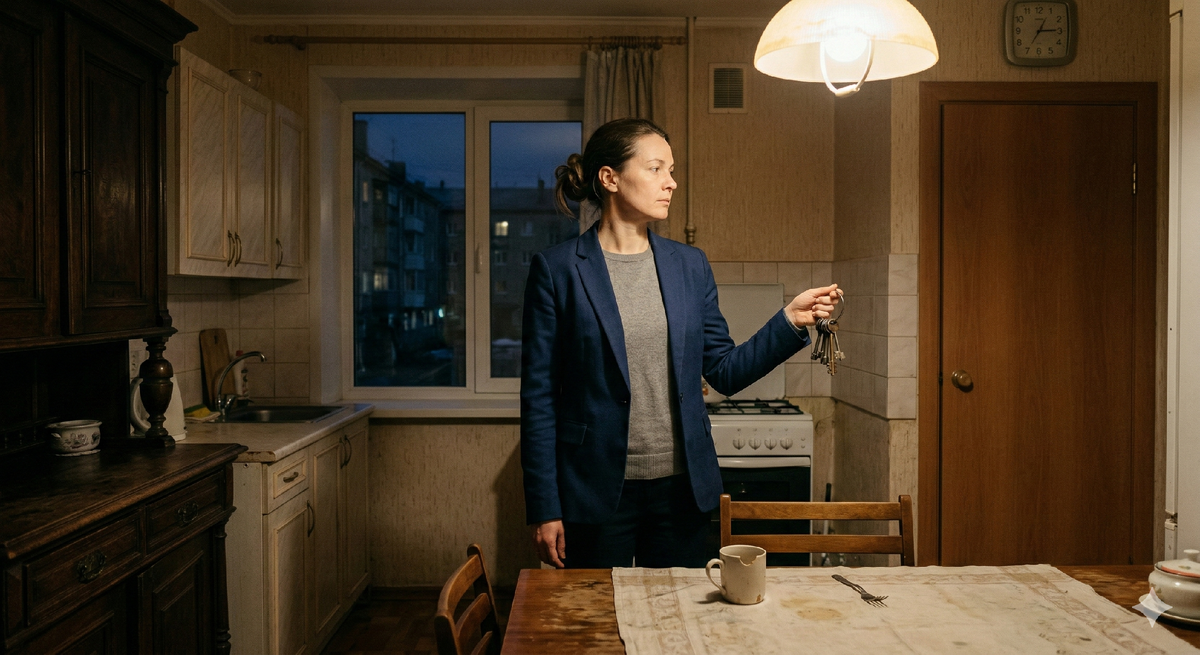 Ровно пять минут назад мы смеялись. Вадим хвастался перед своей матерью, какой он молодец — купил новые диски на машину. Я сидела в своем старом, растянутом сером свитере, который он называл «твоя рабочая роба», и чувствовала, как внутри что-то осыпается. Не щёлкает, не ломается — просто осыпается, как сухая штукатурка.