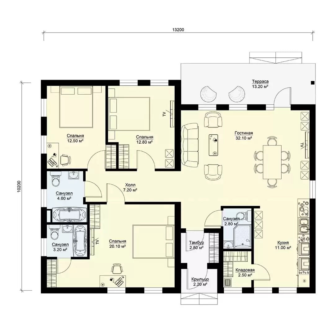 🏡 Представляем наш новый проект — уютный одноэтажный загородный дом БП-127! 🏡 Этот современный дом площадью 111 м² идеально подойдет для комфортной жизни семьи из 4 человек. В нем есть всё для вашего уюта: 3 спальни, просторная гостиная с выходом на террасу, два санузла и главная спальня с собственной ванной комнатой. 🌿✨ Дом выполнен из энергоэффективных железобетонных панелей БЭНПАН, имеет красивую четырехскатную крышу и два входа — всё для вашего удобства! Окна расположены со всех сторон, обеспечивая круговую панораму и дневное освещение. 🌅🪟 Планировка: через крыльцо попадаем в тамбур и холл, далее — просторная кухня-гостиная с обеденной зоной и выходом на террасу, две спальни и главная спальня с ванной. Всё продумано для вашего комфорта! 🛋🍽 Хотите узнать больше? Перейдите по ссылке: 👉 https://benpan.ru/project/bp-127-odnoehtazhniy-dachniy-dom/?utm_source=dzen