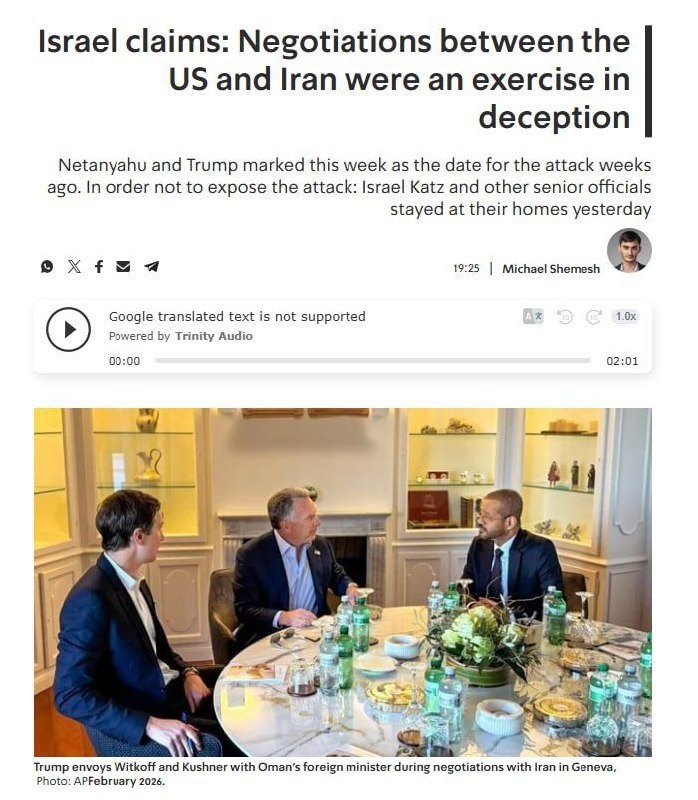 Об этом сообщает близкое к правящей в Израиле партии "Ликуд" Kan News. Нетаньяху и Трамп заранее назначили эту неделю целевой датой для операции. При этом, чтобы не вызывать подозрений, Исраэль Кац и другие высокопоставленные чиновники почти сутки оставались дома, чтобы у Ирана не возникли подозрения. Сальное Дифлопэ