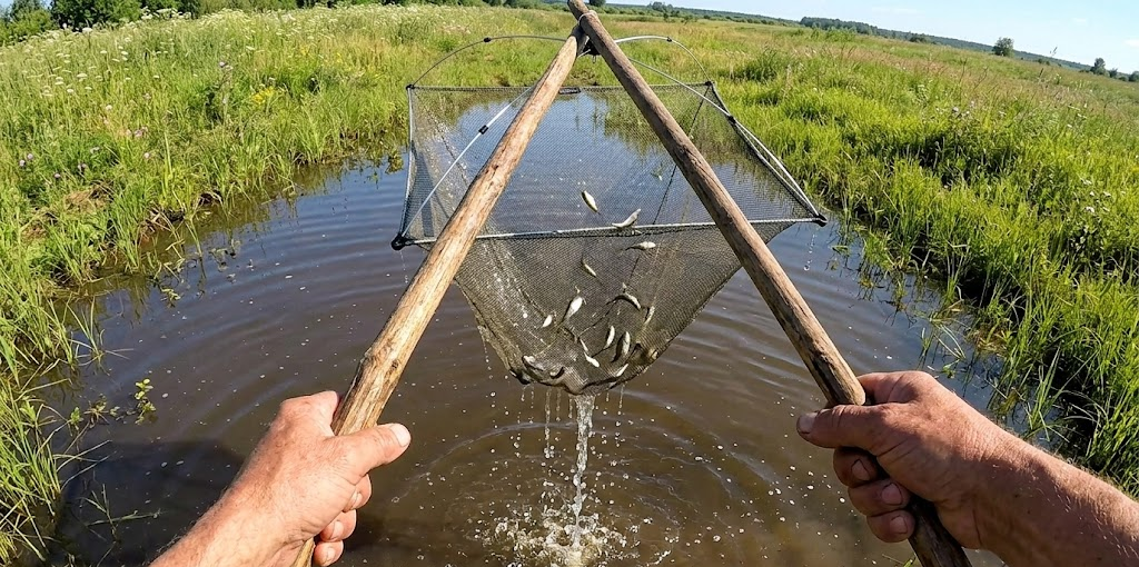 Бывают на водоеме такие моменты, когда вместо привычного карасика или плотвы природа подкидывает тебе настоящий сюрприз. Мы ведь как привыкли: ну пиявка к сапогу прицепится, ну ондатра мимо поплавка проплывет. Это всё знакомое и родное. Но иногда из воды появляется нечто настолько древнее и необычное на вид, что рука сама тянется за телефоном — сфотографировать, пока оно не уползло. Приветствую вас уважаемые рыбаки, вы на канале "Клевая рыбалка". Дело было в самом начале лета. Мощный весенний разлив реки уже сошел, оставив после себя на лугах глубокие прогретые лужи и болотца. В таких временных «коммуналках» часто оказывается заперта рыбья мелочь, не успевшая скатиться обратно в русло вместе с уходящей водой. Я приехал на реку с прицелом половить щуку, а живца с собой не привез. Решил наловить верховку прямо по месту. Достал из багажника свой складной квадратный паук-малявочник, надежно привязал крестовину к длинному деревянному шесту, накрошил в сетку белого хлеба и опустил конструкц
