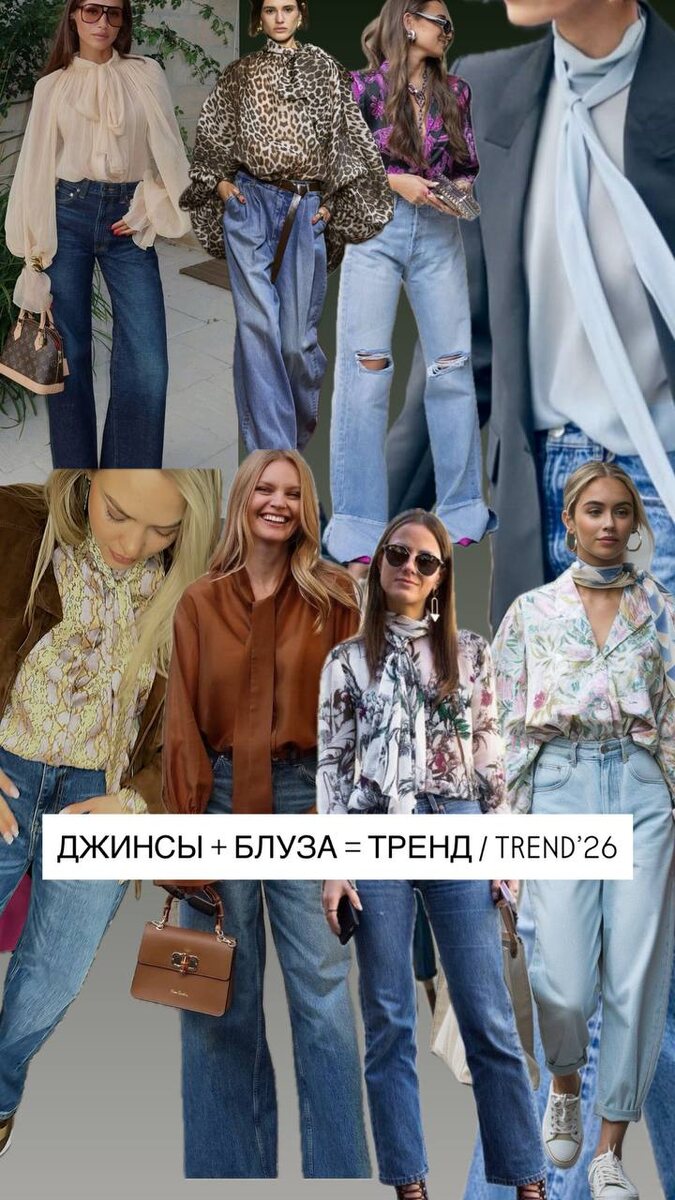 Это ТРЕНД. Один из самых интеллигентных trends ( и нам он безумно нравится!) Если раньше носили джинсы с футболками и свитерами, то сейчас стильную девушку отличает совсем другой выбор: Глубокий деним и благородная блуза. Грубоватая фактура и мягкая драпировка. Именно так сегодня рождается образ, который выглядит дороже, чем стоит. ⚠️ рассмотрите внимательно, как расслабленно , но в тоже время уверенно выглядят эти девушки на фото. Это легко и не затратно можно ввести в свой стильный гардероб. одни джинсы — несколько характерных блуз — и каждый раз новый уровень образа . 🙌 шелковые блузы уже отшиты и в магазине! .