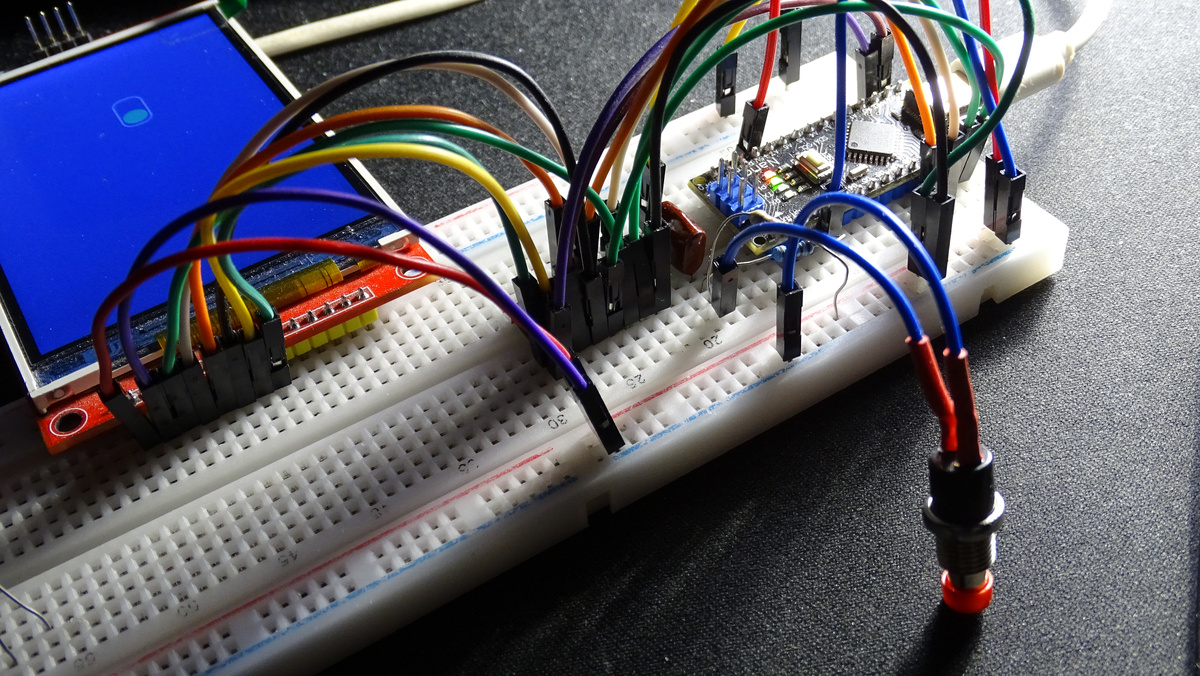 Схема подключения экрана стандартная, с тем лишь уточнением, что в текущей версии библиотеки Display Lib pin RESET для режима SPI возвращен на свое место. И рестарт происходит силами микроконтроллера. Это я некоторое время назад находился так сказать под тлетворным влиянием интернета. Типа подключаемся с минимальным количеством проводов «RESET заведен на Vcc, Chip Select на GND». Chip Select нужен, так как SPI используется для SD карты, тут без вариантов. Ну а RESET по крайней мере для SPI я решил что можно оставить на Vcc. Но как показала практика, при перепрошивке, довольно редко, конечно, но бывает что дисплей не стартует, приходится помогать кнопкой на плате микроконтроллера. А раньше такого не было.