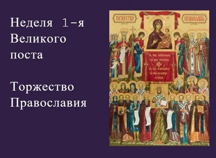 — «В сей день, в первую Неделю святого поста, – сообщает «Синаксарь», – Церковью принято праздновать восстановление почитания святых и честных икон, совершенное царем Михаилом III и его матерью, блаженной царицей Феодорой, а также святым патриархом Константинопольским Мефодием».
